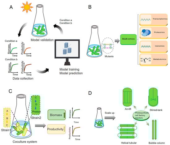 - Long, B.; Fischer, B.; Zeng, Y.; Amerigian, Z.; Li, Q.; Bryant, H.; Li, M.; Dai, S.Y.; Yuan, J.S. Machine learning-informed and synthetic biology-enabled semi-continuous algal cultivation to unleash renewable fuel productivity. Nat. Commun. 2022, 13, 541. [Google Scholar] [CrossRef] [PubMed]