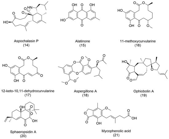 29]. Marine fungi are a vital source of lead compounds, offering promising opportunities for drug discovery and targeted therapies due to their unique metabolic pathways and biodiversity. Notably, species of