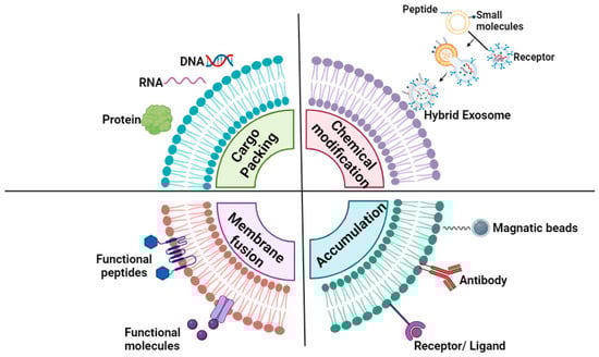 - Zeng, H.; Guo, S.; Ren, X.; Wu, Z.; Liu, S.; Yao, X. Current Strategies for Exosome Cargo Loading and Targeting Delivery. Cells 2023, 12, 1416. [Google Scholar] [CrossRef]
