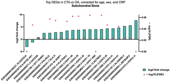 Top DEGs in subchondral bone of MetS-associated CTA, corrected for age, sex, and CRP.