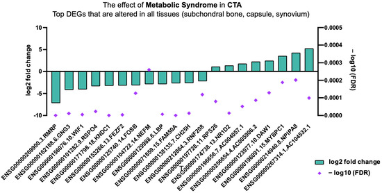 Top DEGs that are altered in all tissues (subchondral bone, capsule, synovium) of MetS-associated CTA.