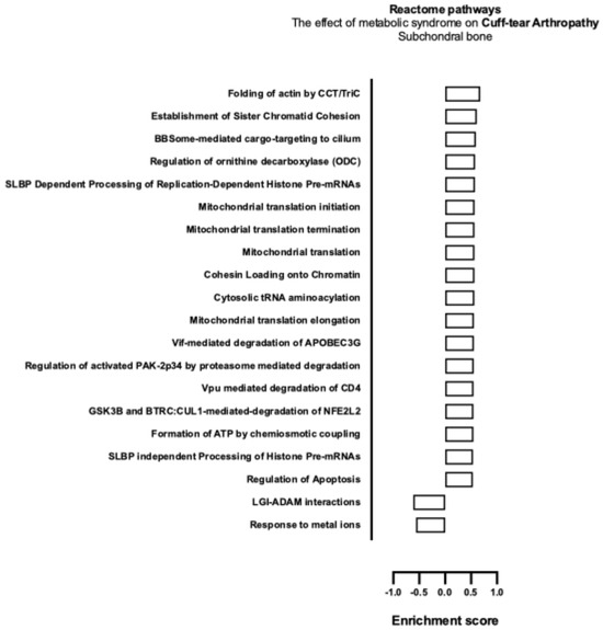 Subchondral bone biopsies in MetS-associated primary shoulder OA show a more inflammatory profile; upregulated anabolic and catabolic processes also demonstrated this (Table 5).