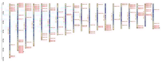In this study, we identified a total of 142 gene family members (Table S1). They were renamed MsbHLH1-MsbHLH142, where MsbHLH140-MsbHLH142 could not be localized to any chromosomal scaffold. The remaining 139 MsbHLH members were unevenly distributed in the 19 chromosomes (Figure 1), with chromosome 2 (HIC_ASM_2) containing the maximum number of genes with 20 genes (MsbHLH11-MsbHLH30), followed by chromosome 3 (HIC_ASM_3) with 11 genes (MsbHLH31-MsbHLH41). Chromosome 14 (HIC_ASM_14) had the minimum number of genes, with only 2 MsbHLH genes (MsbHLH102 and MsbHLH103).
