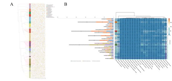 - Huerta-Cepas, J.; Szklarczyk, D.; Heller, D.; Hernández-Plaza, A.; Forslund, S.K.; Cook, H.; Mende, D.; Letunic, I.; Rattei, T.; Jensen, L.J.; et al. eggNOG 5.0: A Hierarchical, Functionally and Phylogenetically Annotated Orthology Resource Based on 5090 Organisms and 2502 Viruses. Nucleic Acids Res. 2019, 47, D309–D314. [Google Scholar] [CrossRef]