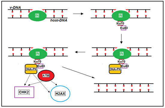 - Anisenko, A.; Nefedova, A.; Agapkina, Y.; Gottikh, M. Both ATM and DNA-PK Are the Main Regulators of HIV-1 Post-Integrational DNA Repair. Int. J. Mol. Sci. 2023, 24, 2797–2809. [Google Scholar] [CrossRef]