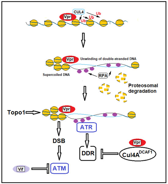 - Iijima, K.; Kobayashi, J.; Ishizaka, Y. Structural alteration of DNA induced by viral protein R of HIV-1 triggers the DNA damage response. Retrovirology 2018, 15, 8. [Google Scholar]