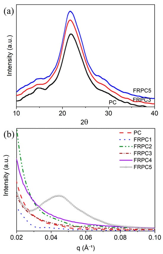 (a) WAXD patterns, and (b) Lorentz-corrected SAXS profiles of FRPCs compared to neat PC.