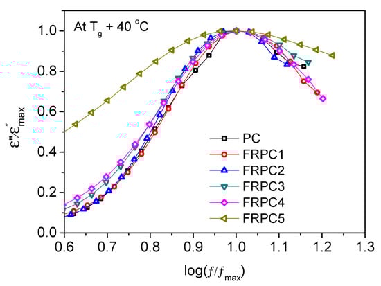 Normalize dielectric α processes of PC and FRPC at Tg + 40 °C.