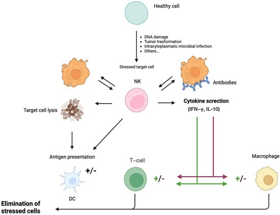 NK cells are effector lymphocytes, accounting for approximately 10% of lymphocytes in human peripheral blood [2]. They belong to the innate immune system but can also participate in the acquired immune response through cytotoxic activity and cytokine production [3] (Figure 2).