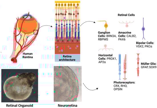 56. Watson, A.; Lako, M. Retinal organoids provide unique insights into molecular signatures of inherited retinal disease throughout retinogenesis. J. Anat. 2023, 243, 186–203. [Google Scholar] [CrossRef] [PubMed]