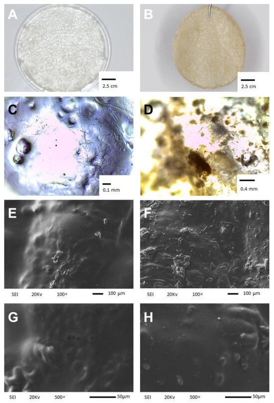 2.1. Physical Appearance and Scanning Electron Microscopy Analysis