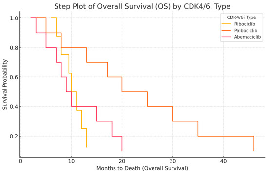 Studies have highlighted that factors such as patient age, comorbidities, and prior lines of therapy may influence treatment outcomes [14,15,16]. In addition, a growing body of evidence has pointed to the role of genetic alterations, such as mutations in PIK3CA or loss of PTEN, which may predict a differential response to CDK4/6i therapy [17,18]. Recent cohort studies have found that the overall survival (OS) for patients receiving first-line CDK4/6 inhibitors can range from 30 to 50 months, with time on treatment averaging from 14 to 16 months [19,20,21].