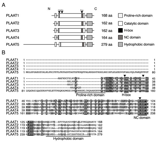 3.1. The PLAAT Family Functions as Ca2+-Independent N-/O-Acyltransferases and PLA1/A2s