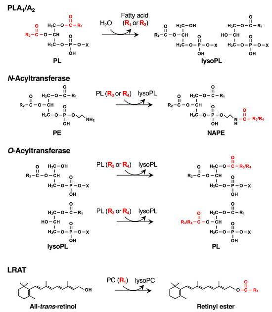 | PLA1/A2 | N-Acyltransferase | O-Acyltransferase | |||