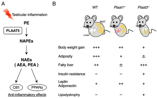 - Sikder, M.M.; Sasaki, S.; Miki, Y.; Nagasaki, Y.; Ohta, K.I.; Hussain, Z.; Saiga, H.; Ohmura-Hoshino, M.; Hoshino, K.; Ueno, M.; et al. PLAAT5 as an N-acyltransferase responsible for the generation of anti-inflammatory N-acylethanolamines in testis. Biochim. Biophys. Acta Mol. Cell Biol. Lipids 2025, 1870, 159583. [Google Scholar] [CrossRef] [PubMed]