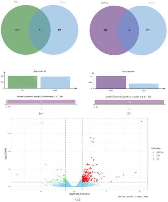 2.6. Association Analysis of Differentially Methylated Genes (DMGs)
