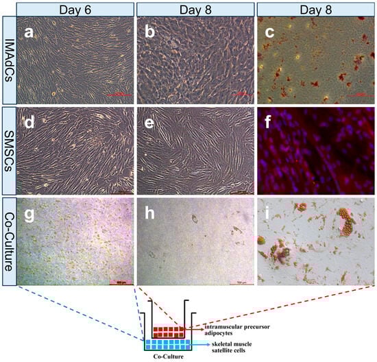 2.1. Establishment of a Co-Culture System with Intramuscular Preadipocytes and Skeletal Muscle Satellite Cells from Tan Sheep