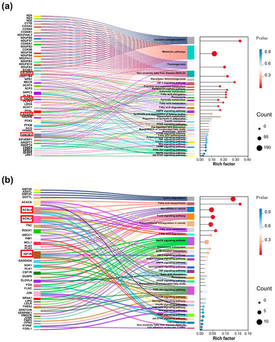 - Cheng, F.; Liang, J.; Yang, L.; Lan, G.; Wang, L.; Wang, L. Systematic Identification and Comparison of the Expressed Profiles of lncRNAs, miRNAs, circRNAs, and mRNAs with Associated Co-Expression Networks in Pigs with Low and High Intramuscular Fat. Animals 2021, 11, 3212. [Google Scholar] [CrossRef]