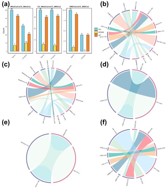 2.5. Identification of Ligands and Receptors Affected by Co-Culture and Construction of Ligand–Receptor Pairs Mediating Autocrine and Paracrine Crosstalk in Homologous and Heterologous Cell Types