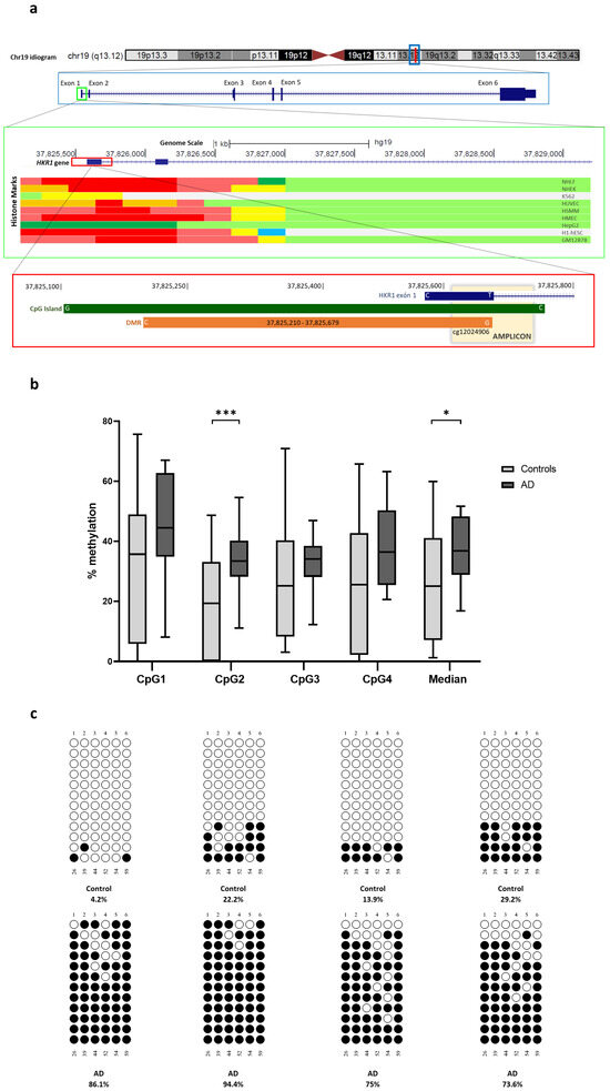 - Smith, R.G.; Hannon, E.; De Jager, P.L.; Chibnik, L.; Lott, S.J.; Condliffe, D.; Smith, A.R.; Haroutunian, V.; Troakes, C.; Al-Sarraj, S.; et al. Elevated DNA methylation across a 48-kb region spanning the HOXA gene cluster is associated with Alzheimer’s disease neuropathology. Alzheimers Dement. 2018, 14, 1580–1588. [Google Scholar] [CrossRef] [PubMed]