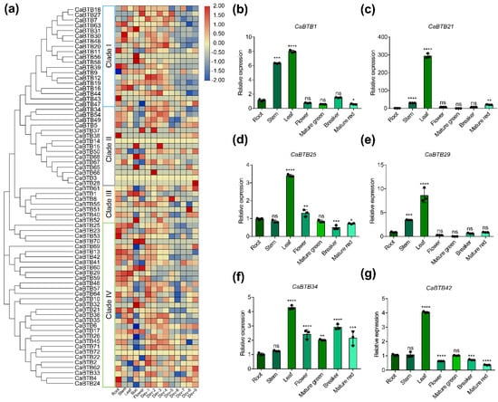 2.6. Expression Pattern Analysis of CaBTB Genes in Various Tissues