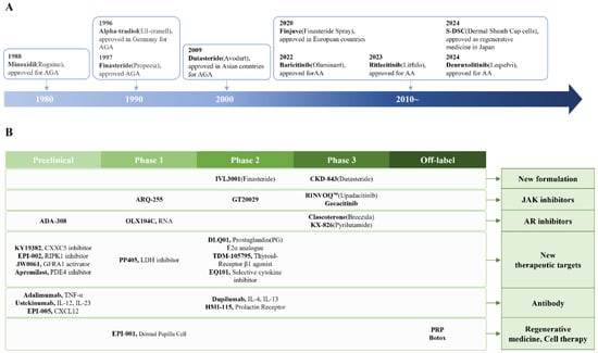 Kim J, Song S-Y, Sung J-H. Recent Advances in Drug Development for Hair Loss. International Journal of Molecular Sciences. 2025; 26(8):3461. https://doi.org/10.3390/ijms26083461