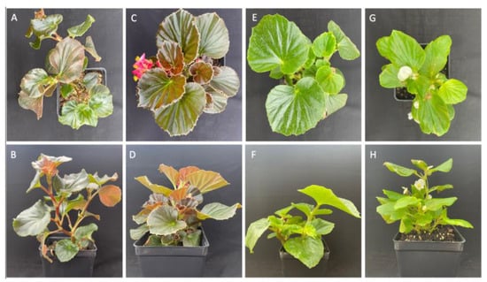 The genus Begonia comprises over 1800 species, positioning it among the most taxonomically and ecologically diverse groups in the plant kingdom. This diversity is exemplified by a vast spectrum of morphological, ecological, and adaptive traits, predominantly found within tropical and subtropical ecosystems [1,2,3]. The evolutionary plasticity and adaptability of Begonia continue to draw significant attention from botanists, ecologists, and horticulturists. Ongoing discoveries of new species and hybrids underscore its dynamic evolutionary trajectory and emphasize its substantial horticultural and ecological potential [4]. Among the members of this genus, Begonia semperflorens-colturum, or wax begonia, holds considerable economic and esthetic value as one of the most widely cultivated bedding plants [5,6,7]. Their vibrant foliage, continuous flowering habits, and resilience to variable urban environments make them valuable in landscaping for roadsides, walkways, and garden beds. In the United States alone, the economic contribution of wax begonias surpassed USD 130 million in 2019, with Florida recognized as a central hub for their production and commercial distribution [8].
