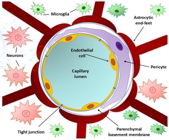 - Benz, F.; Liebner, S. Structure and Function of the Blood-Brain Barrier (BBB). Handb. Exp. Pharmacol. 2022, 273, 3–31. [Google Scholar] [CrossRef]