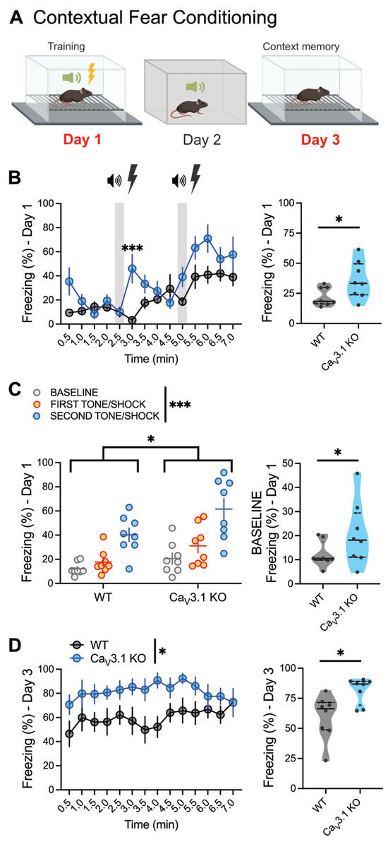 In conclusion, we reported that thalamic CaV3.1 T-type calcium channels are a crucial regulator of fear behavior in mice. Considering the significant role of the midline and intralaminar nuclei of the thalamus in fear learning and responses to aversive stimuli, our data indicate that CaV3.1 T-channels may be a promising novel drug target for treating altered fear responses associated with multiple brain disorders.