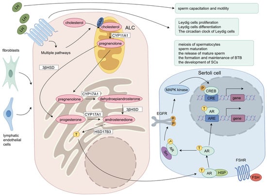 - De Mattos, K.; Pierre, K.J.; Tremblay, J.J. Hormones and Signaling Pathways Involved in the Stimulation of Leydig Cell Steroidogenesis. Endocrines 2023, 4, 573–594. [Google Scholar] [CrossRef]