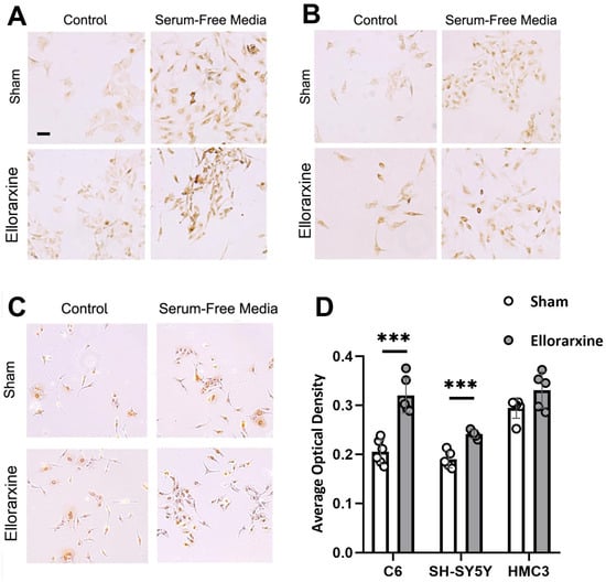 - Lepiarz, I.; Olajide, O. The Human Microglia (HMC-3) as a Cellular Model of Neuroinflammation. IBRO Rep. 2019, 6, S92. [Google Scholar] [CrossRef]