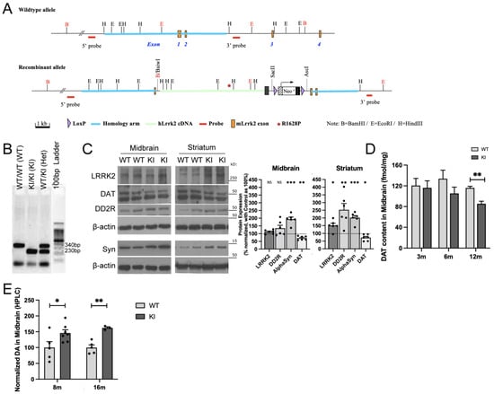- Chang, E.E.S.; Ho, P.W.; Liu, H.F.; Pang, S.Y.; Leung, C.T.; Malki, Y.; Choi, Z.Y.; Ramsden, D.B.; Ho, S.L. LRRK2 mutant knock-in mouse models: Therapeutic relevance in Parkinson’s disease. Transl. Neurodegener. 2022, 11, 10. [Google Scholar] [CrossRef] [PubMed]