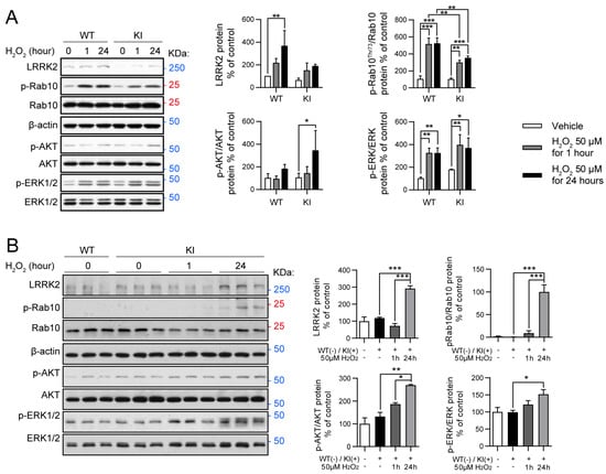 2.3. Oxidative Stress Modulates RAB10, AKT, and ERK Activity in LRRK2 R1628P WT and KI Primary Fibroblast Cells and Primary Cortical Neurons