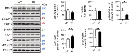 2.4. RAB10, AKT, and ERK Activation Is Altered in Primary Midbrain Neurons from LRRK2 R1628P KI Mice