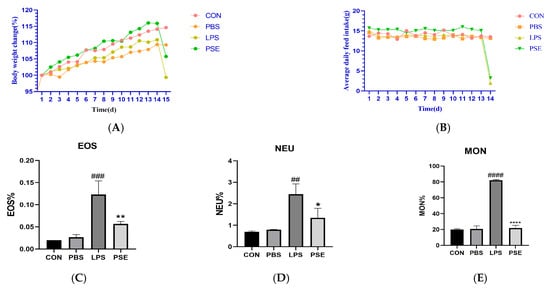2.1.1. Effect of PSE on Blood Indices of Mice