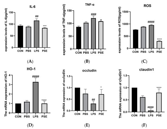 2.1.3. Effects of PSE on Inflammation, Oxidation, and Tight Junction–Related Factors in LPS-Induced Colitis Mice