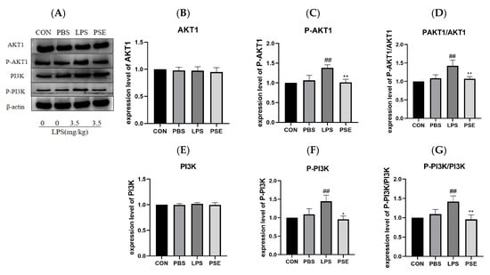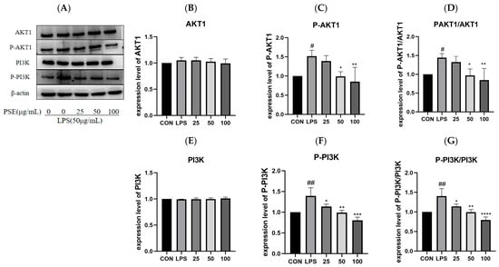 2.5.2. The Effect of PSE on LPS-Induced PI3K/AKT1 Pathway Proteins in MODE-K Cells