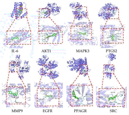 | Target | IL-6 | AKT1 | SRC | PTGS2 | MMP9 | PPARG | EGFR | MAPK3 |