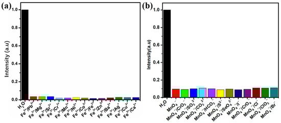 - Zhang, T.; Cao, R.; Li, J.; Tang, H.; Su, H.; Feng, W.; Zhang, Z. A dual-responsive RhB-doped MOF probe for simultaneous recognition of Cu2+ and Fe3+. Sci. Rep. 2024, 14, 11740. [Google Scholar] [CrossRef]