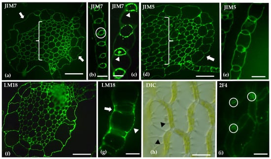 - Casero, P.J.; Casimiro, I.; Knox, J.P. Occurrence of Cell Surface Arabinogalactan-Protein and Extensin Epitopes in Relation to Pericycle and Vascular Tissue Development in the Root Apex of Four Species. Planta 1998, 204, 252–259. [Google Scholar] [CrossRef]