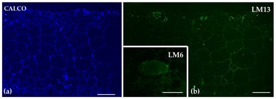 - Kolkas, H.; Burlat, V.; Jamet, E. Immunochemical identification of the main cell wall polysaccharides of the early land plant Marchantia polymorpha. Cells 2023, 12, 1833. [Google Scholar] [CrossRef]