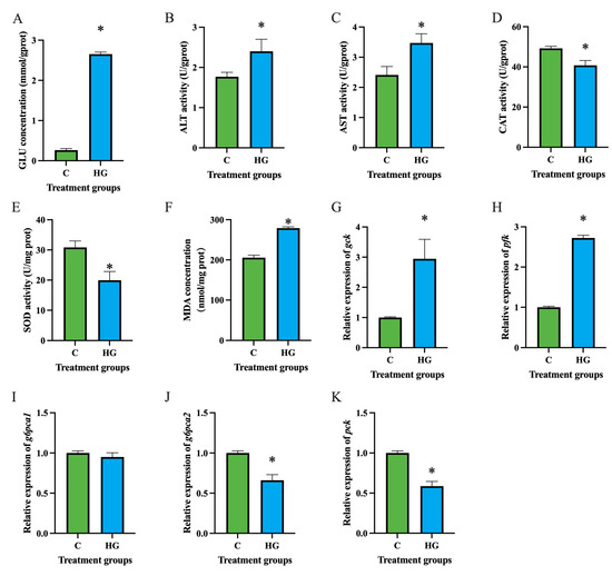 2.1. Effects of High Glucose on the Hepatocytes of C. nasus