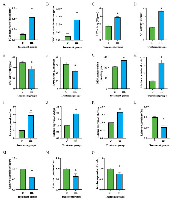 2.2. Effects of High Lipid on the Hepatocytes of C. nasus