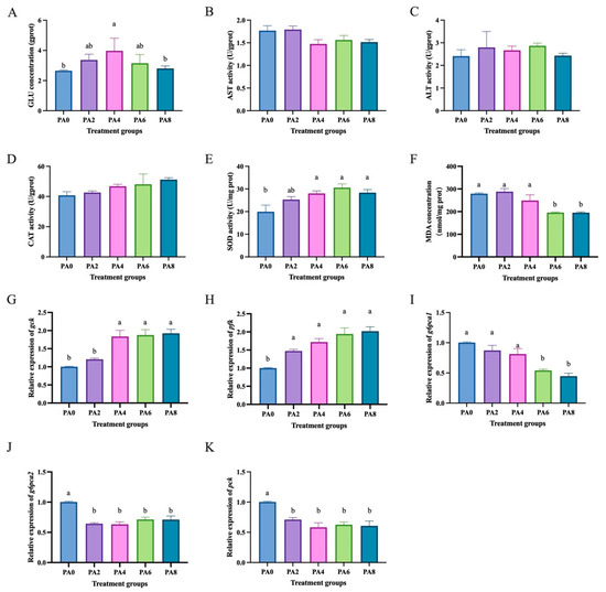 - Mang, Q.; Gao, J.; Li, Q.; Sun, Y.; Xu, G.; Xu, P. Probiotics Enhance Coilia nasus Growth Performance and Nutritional Value by Regulating Glucolipid Metabolism via the Gut–Liver Axis. Int. J. Mol. Sci. 2024, 25, 2196. [Google Scholar] [CrossRef] [PubMed]