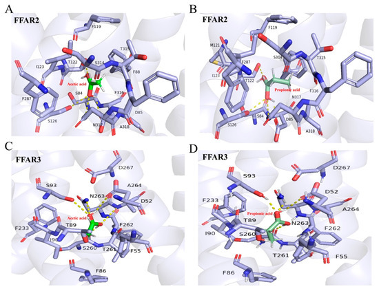 2.5. Molecular Docking Results of SCFAs with Free Fatty Acid Receptor (FFAR)