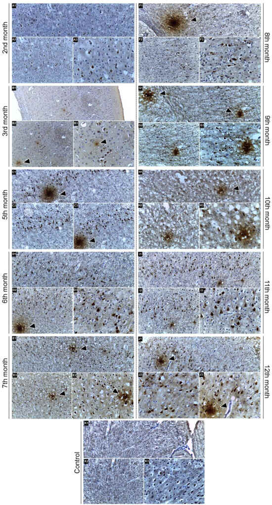 2.3. Immunohistochemical Confirmation of Aβ Peptide Presence in the CNS