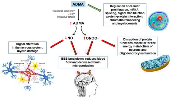 - Singh, I.; Kim, J.; Saxena, N.; Choi, S.; Islam, S.M.T.; Singh, A.K.; Khan, M.; Won, J. Vascular and Immunopathological Role of Asymmetric Dimethylarginine (ADMA) in Experimental Autoimmune Encephalomyelitis. Immunology 2021, 164, 602–616. [Google Scholar] [CrossRef]