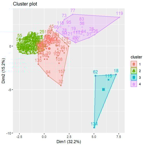 - Charrad, M.; Ghazzali, N.; Boiteau, V.; Niknafs, A. NbClust: An R Package for Determining the Relevant Number of Clusters in a Data Set. J. Stat. Softw. 2014, 61, 1–36. [Google Scholar] [CrossRef]