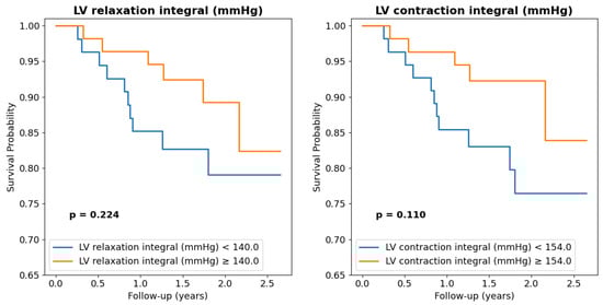 | LV contraction integral (mmHg) | 158.0 ± 33.9 | 120.6 ± 51.5 | 0.04 | 0.98 | 0.03 |
