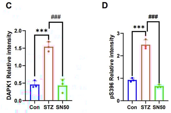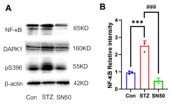 2.6. DAPK1 Protein Expression in the Hippocampal Region of STZ-Treated Rats Is Associated with NF-κB